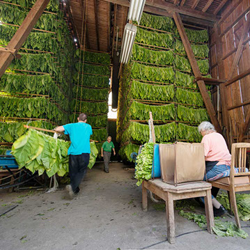 En mi-mai, la semence est plantée et puis cultivée. Ce précieux savoir-faire est transmis de génération en génération. En début juillet, on commence avec la récolte qui, encore de nos jours, est effectuée à la main. Pourtant, après la récolte, le travail n’est pas encore achevé pour les cultivateurs. Les feuilles de tabac doivent encore être attachées et séchées. En étant primordial pour la qualité du produit final, le processus de séchage doit être effectué avec beaucoup de diligence.